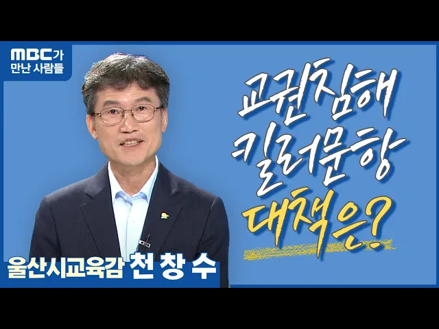 [앵커] 최근 불거지고 있는 교권침해 문제와 올해 수능시험의 킬러 문항 배제 등 각종 교육 현안들이 쏟아져 나오면서 교육계의 관심이 뜨거운데요. MBC가 만난 사람 오늘은 취임 100일을 갓 넘긴 천창수 울산교육감을 모시고 이와 관련한 교육청의 입장과 대책을 들어보는 시간 마련했습니다.Q. 수능이 불과 100여일 앞으...