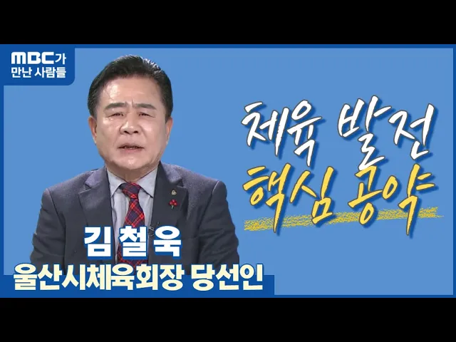 [앵커] 앞으로 4년 동안 울산광역시 체육회를 이끌어나갈 회장에 김철욱 울산시 문화체육정책특보가 선출됐습니다. mbc가 만난 사람 오늘은, 김철욱 울산시체육회장 당선인을 모시고 울산 체육계 현안에 대해 자세한 얘기 나눠보겠습니다. Q. 축하드립니다. 먼저 당선 소감 한 말씀 해주시죠. 많은 분들의 축하 전화와 축하...