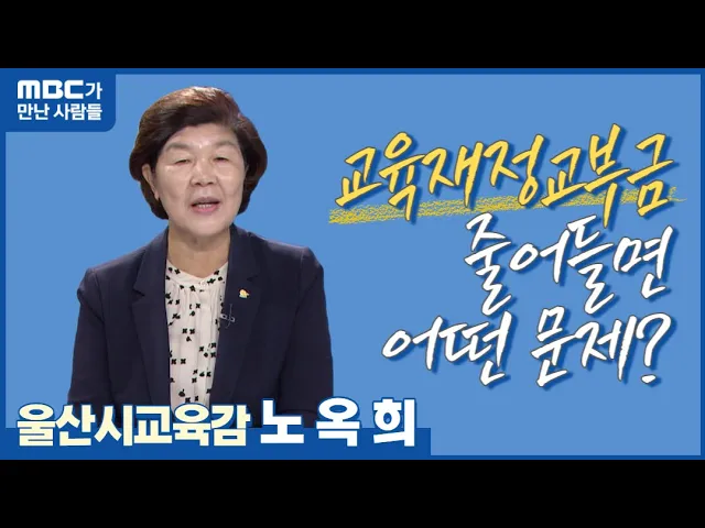 요즘 교육계에서는 교육재정교부금을 둘러싸고 논쟁이 뜨겁게 벌어지고 있습니다. 중등교육에만 지원되는 예산의 일부를 재정난을 겪고 있는 대학에도 지원해야 되는게 아니냐는 지적 때문인데요, mbc가 만난사람 오늘은 노옥희 울산시교육감을 모시고 이 문제에 대해 이야기 나눠 보겠습니다. Q. 교육감님, 세수가 늘면 교...