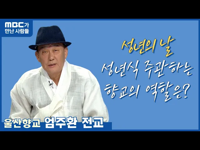 ◀ 앵 커 ▶ 5월의 세 번째 월요일인 오늘은 법정기념일인 성년의 날입니다. 성인으로서의 책임감을 일깨워주는 날이기도 한데요. MBC가 만난 사람 오늘은 성년식을 주관하는 울산 향교 엄주환 전교 모시고 함께 이야기 나누겠습니다. 안녕하십니까? 질문1) 먼저 이 성년식의 의미 한번 좀 짚고 오늘 이야기 시작했으면 좋겠...