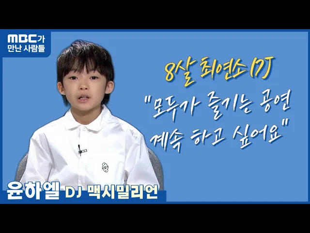 [앵커]초등학교 2학년 학생이 현역 DJ로 활동하고 있어 화제입니다.댄스 뮤직을 직접 작곡도 하고 있다고 하는데요, MBC가 만난 사람, 오늘은 맥시밀리언이라는 이름으로 활동하고 있는 DJ 윤하엘과 함께 이야기 나눠보겠습니다. [리포트]Q. 2016년생, 올해 8살이죠? 네Q. MBC가 만난 사람에 출연한 분 가운데 가장 어린 것...