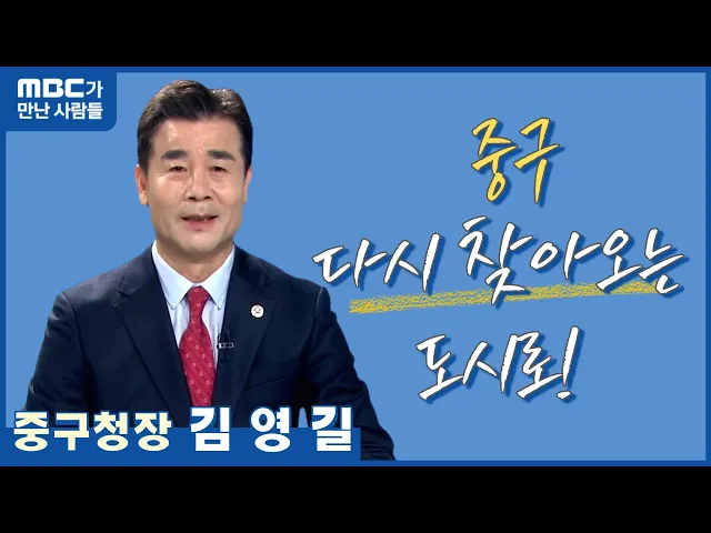 [앵커]어느덧 2년차를 맞이한 민선 8기 자치단체장들을 만나 올해 구정의 방향과 현안들을 점검해보는 시간을 마련했습니다.MBC가 만난 사람 오늘은 김영길 중구청장과 함께 하겠습니다. 안녕하십니까? Q. 새해 구정은 어떻게 계획하고 계십니까? 여러 가지 계획들을 갖고 있지만 도시의 경쟁력은 저는 인구라고 생각합니다...